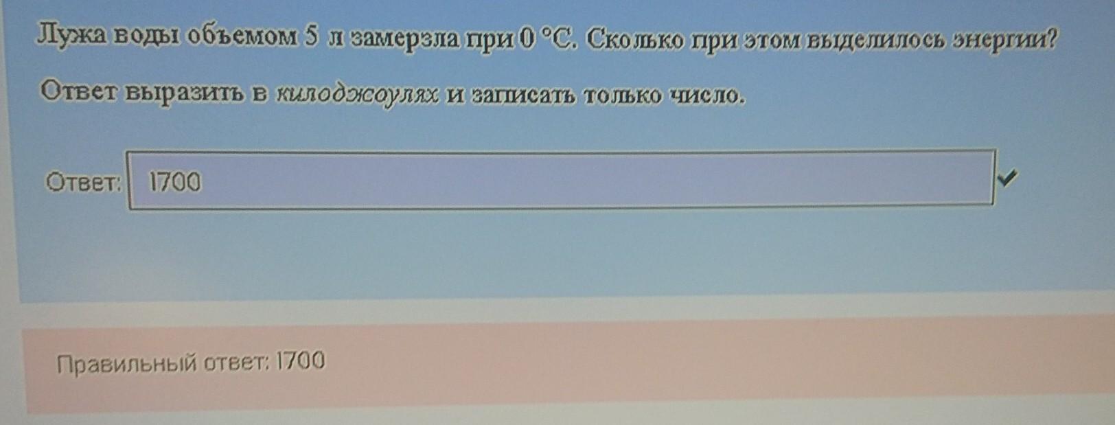 Лужа воды объемом 5 л замерзла при 0 ºС. Сколько при этом выделилось энергии?