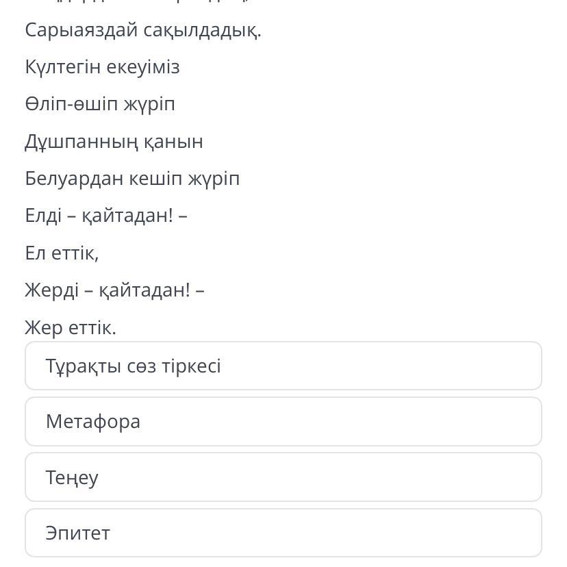 Жыр үзіндісінде көркемдегіш құралдың қай түрі кездеседі?