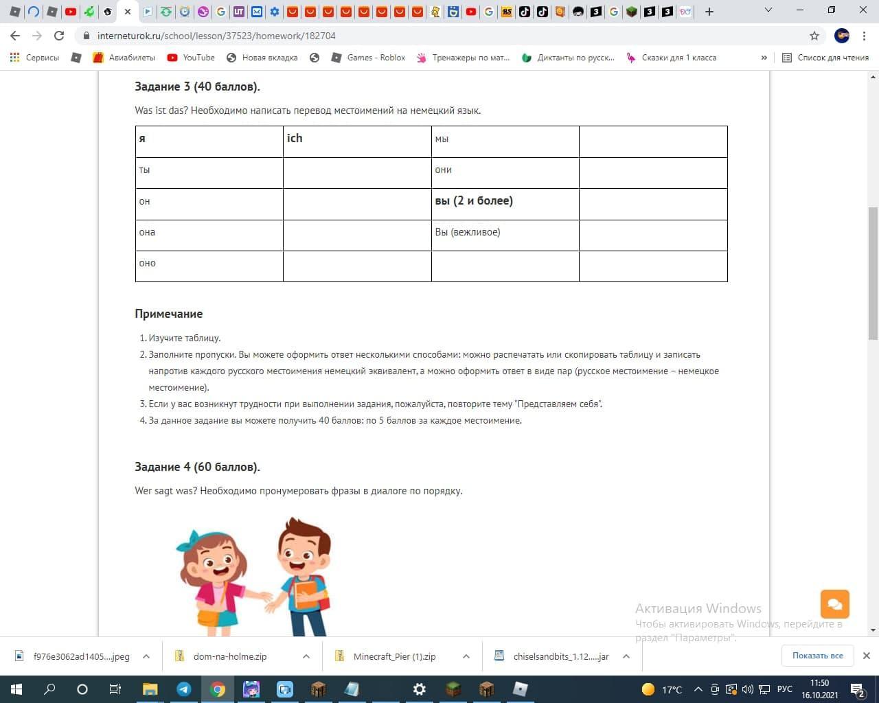 3) ты - du, он - er, она - sie, оно - es, мы - wir, они - sie, вы - ihr, вы (уваж.) - Sie