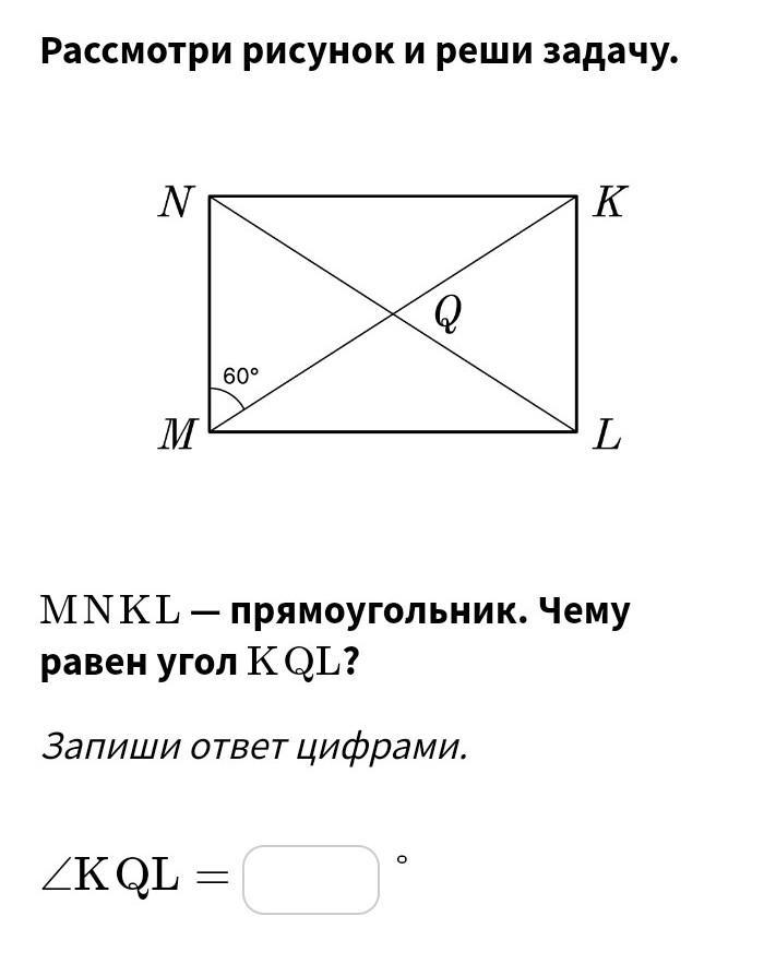угол KQL СМЕЖНЫЙ С MQL следовательно он равен 180-120=60