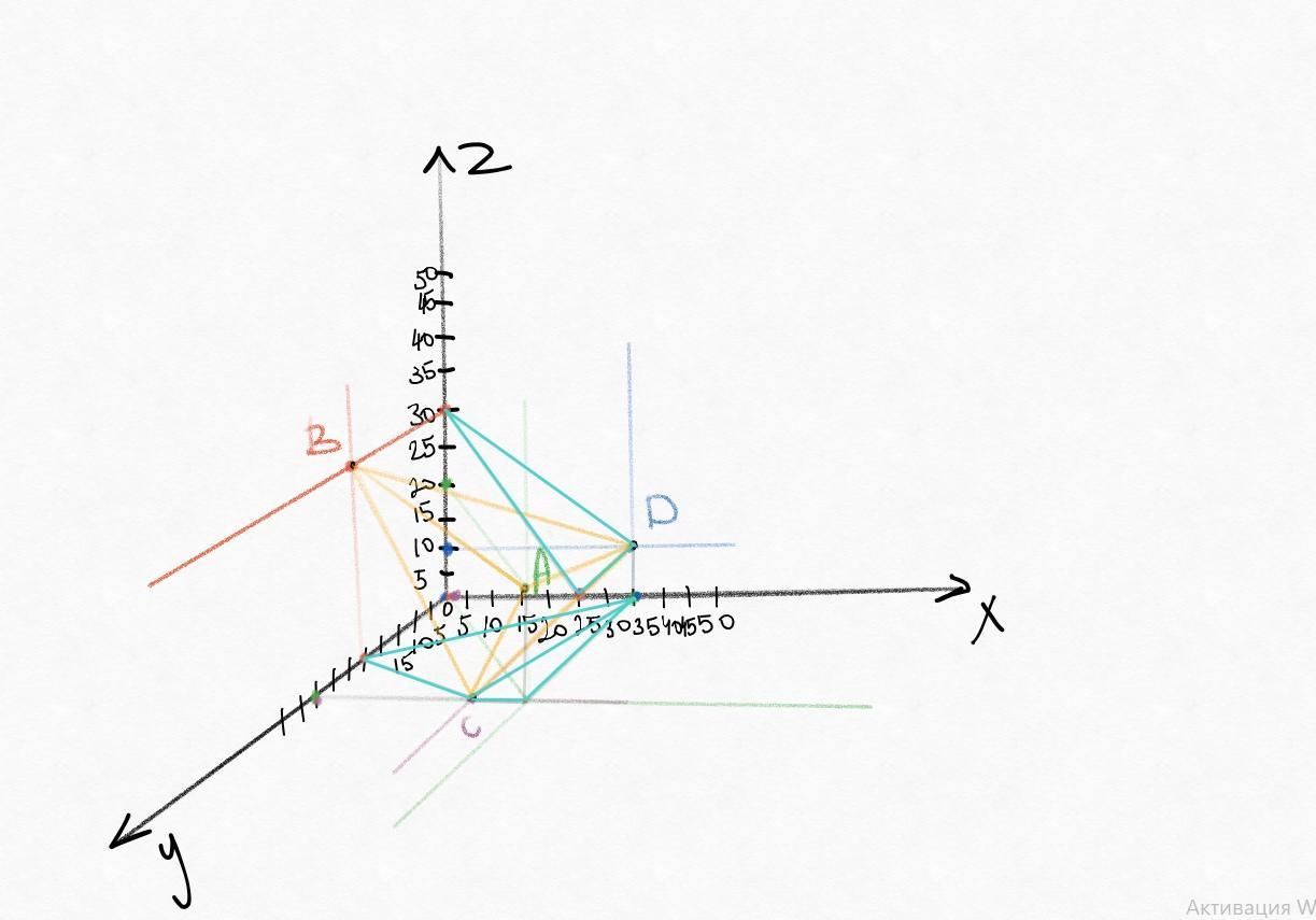 забыл на плоскость X0Z проекцию нарисовать, для этого соедини 15 по оси У, 10 по оси Z и точку В