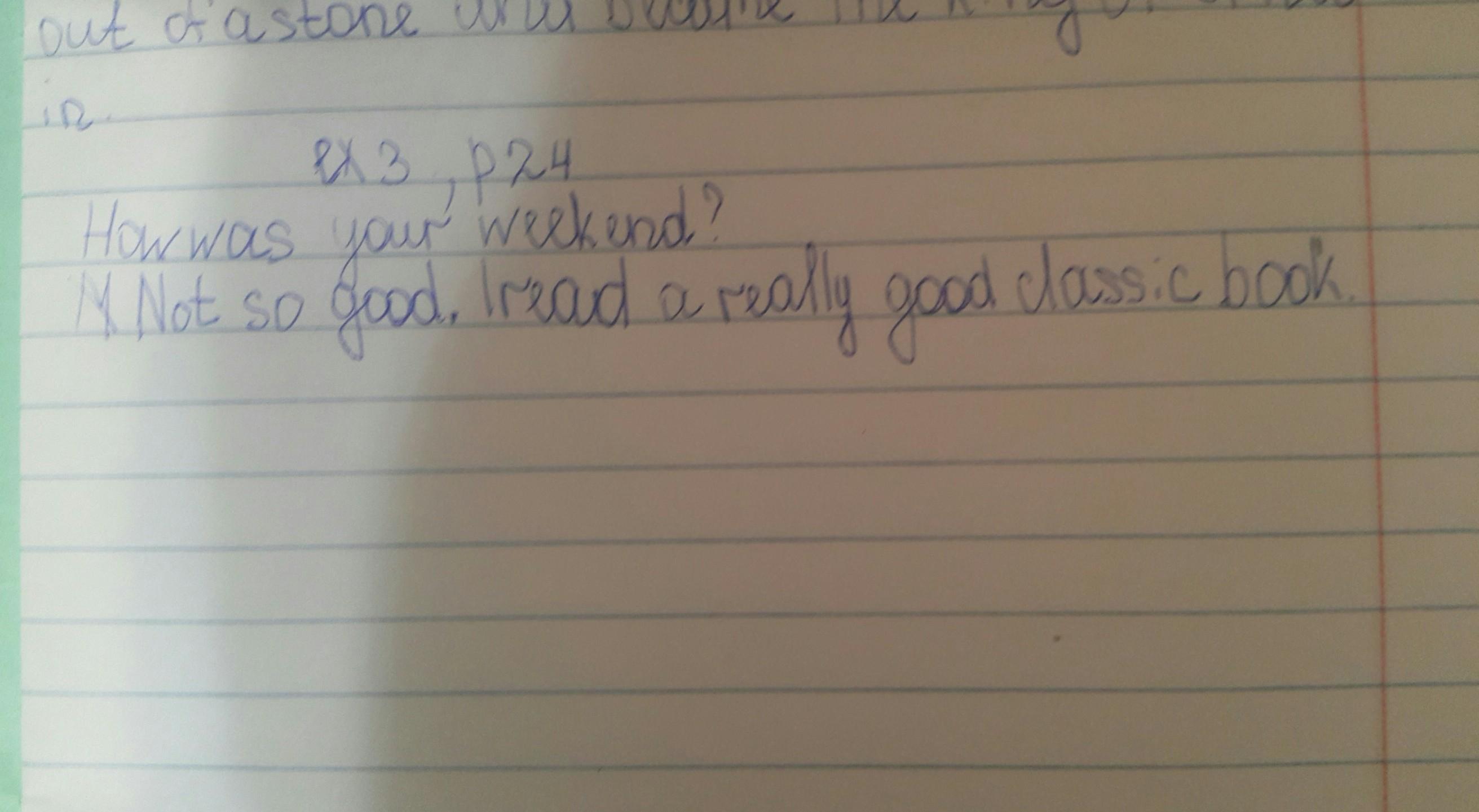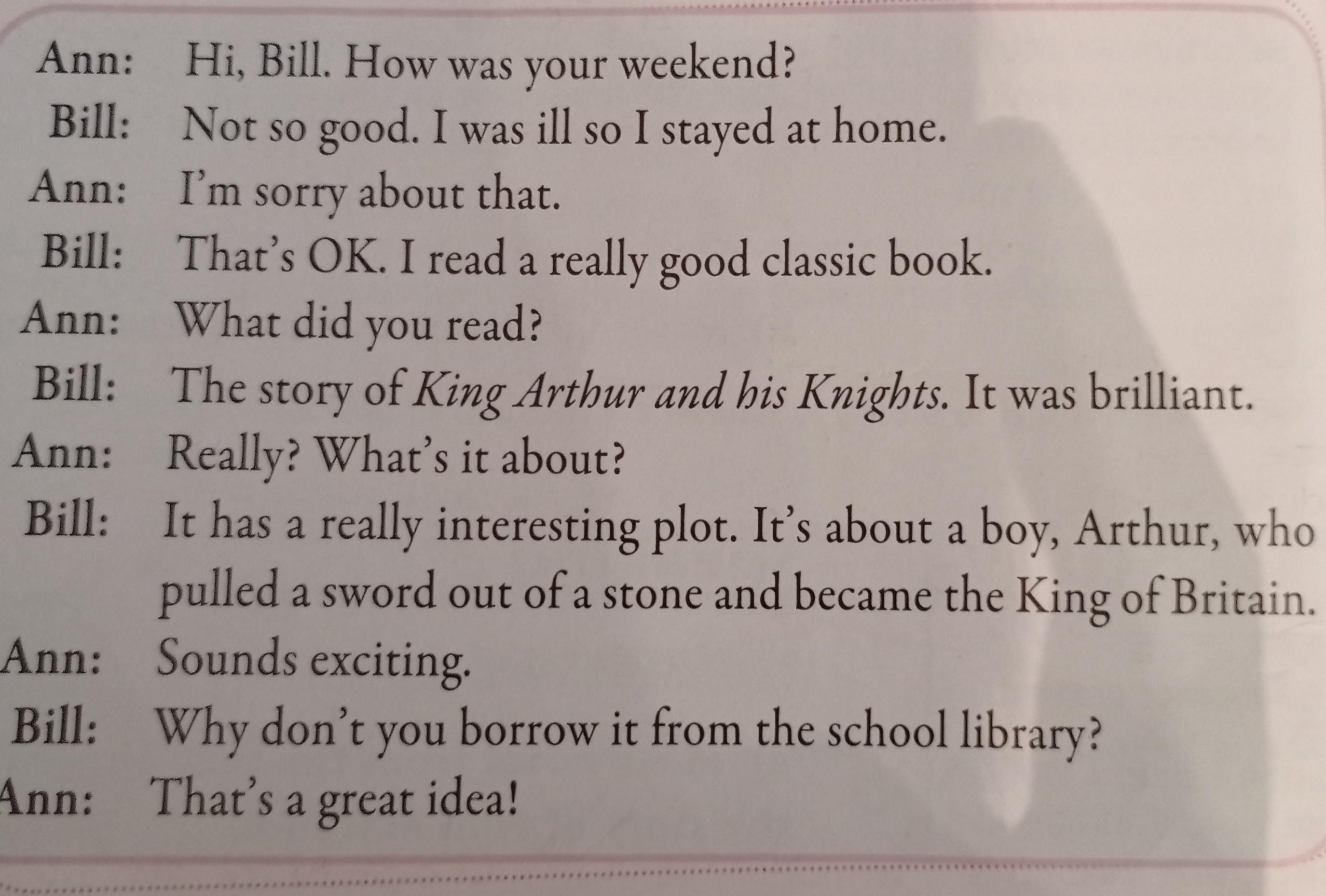 Find sentences in the dialogue which mean the following: Did you enjoy your weekend? - That's too bad. - Sounds really good.