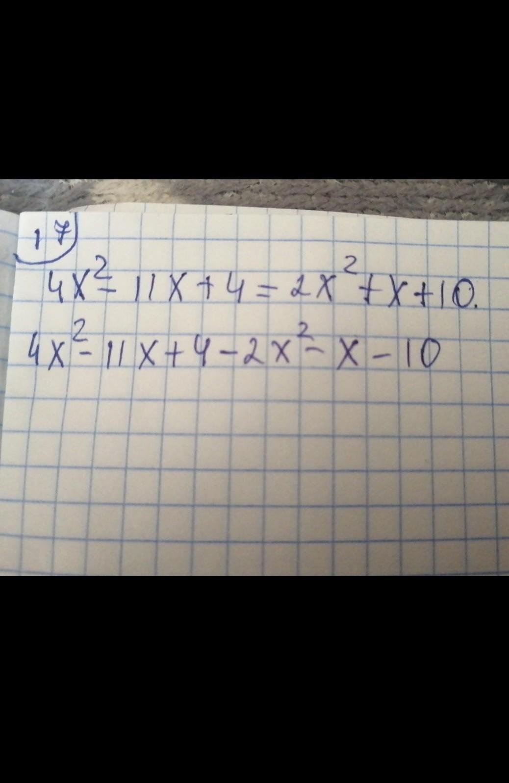 далее 4 х квадрат -11х + 4-2х квадрат-х-10=0