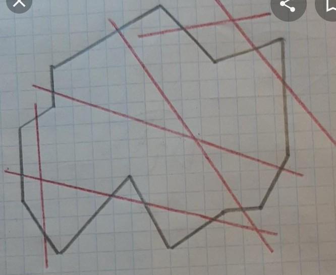 Нарисуйте двенадцатиугольник, все стороны которого лежат на шести прямых. Пожалуйста очень срочно!!!!!!