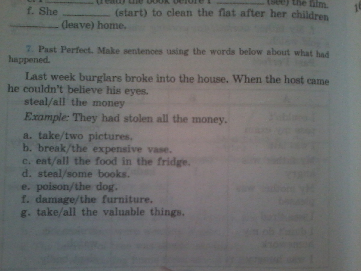 a)in the art gallery,c)in the fridge,d)in the shop,g)in my flat