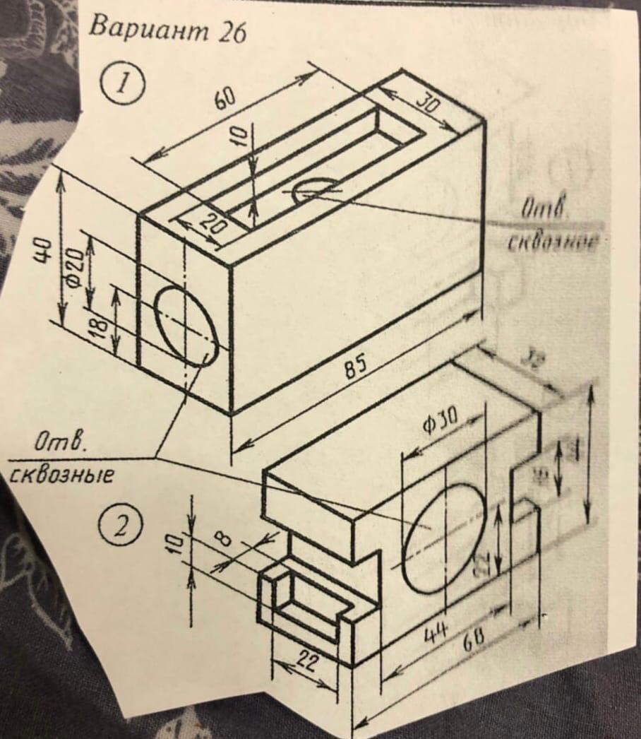 по аксонометрической проекции модели построить в трех проекциях ее чертеж