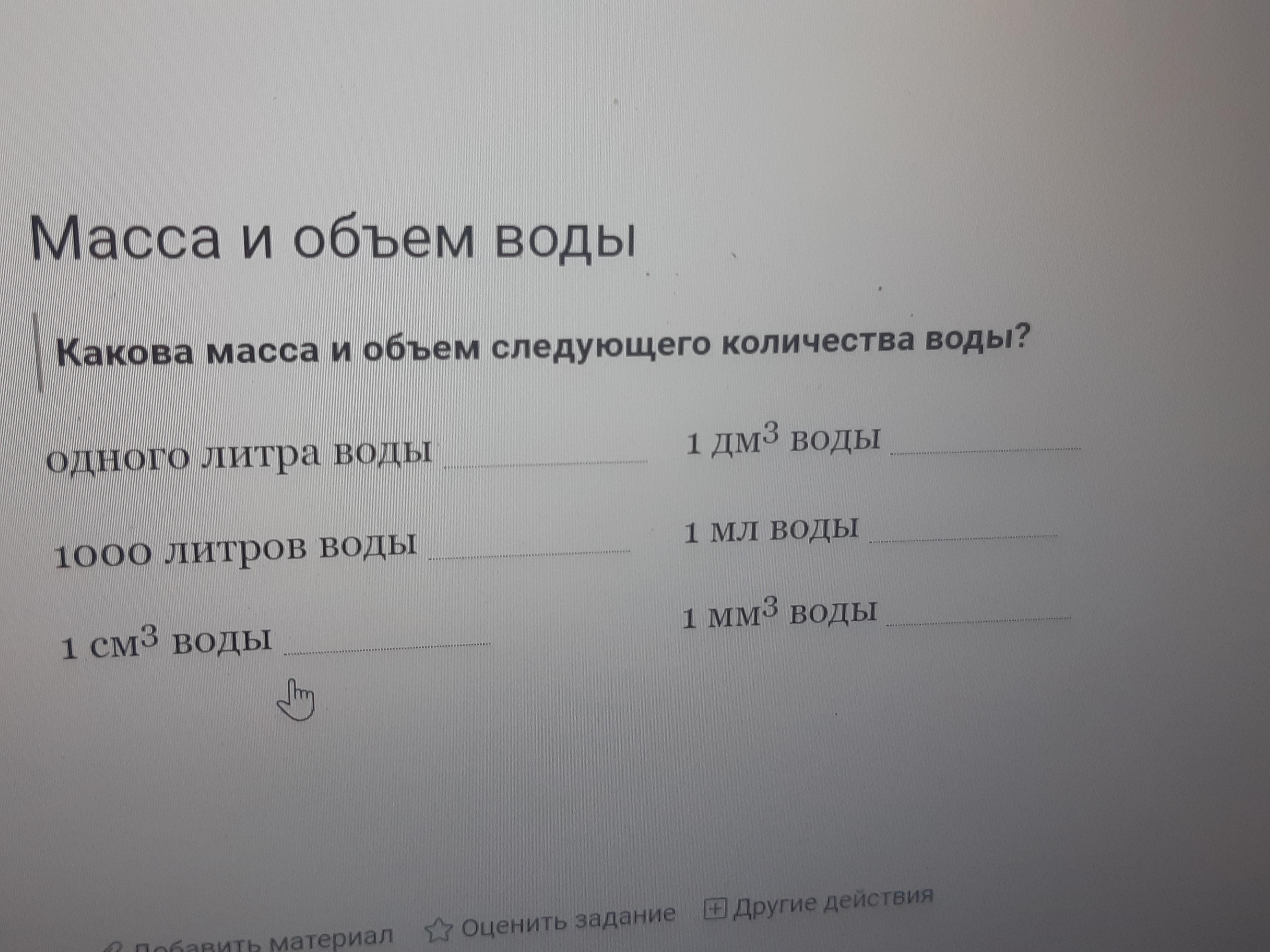 Надо написать массу и объем написанного количества воды