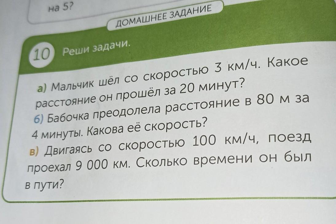 а)3км/ч=3000м÷60=50м/мин скорость мальчика в метрах за минуту. 50×20=1000м или 1км прошел мальчик за 20 минут.