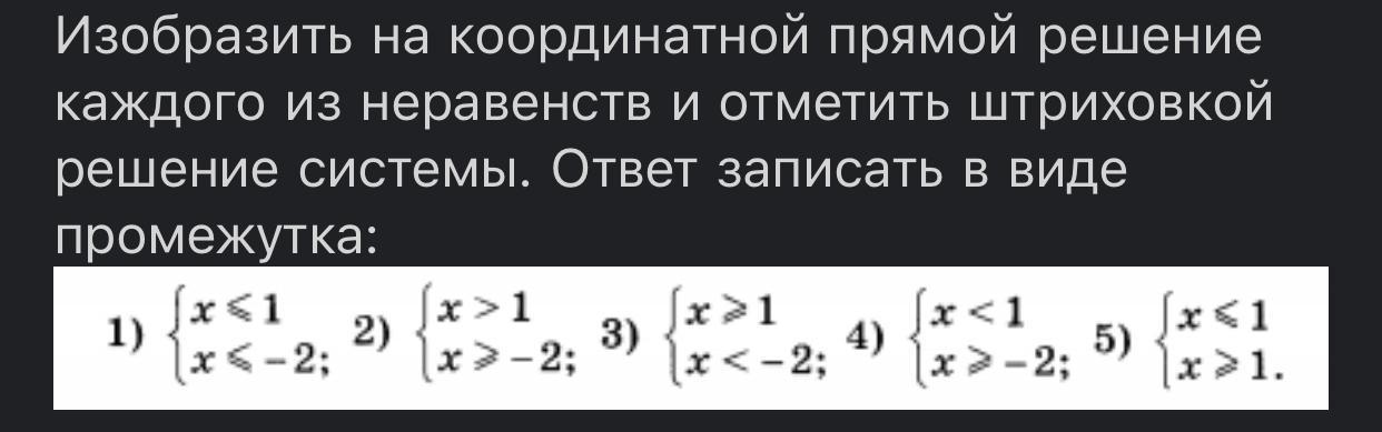 Изобразить на координатной прямой решение каждого из неравенств и отметить штриховкой решение системы. Ответ записать в виде промежутка: