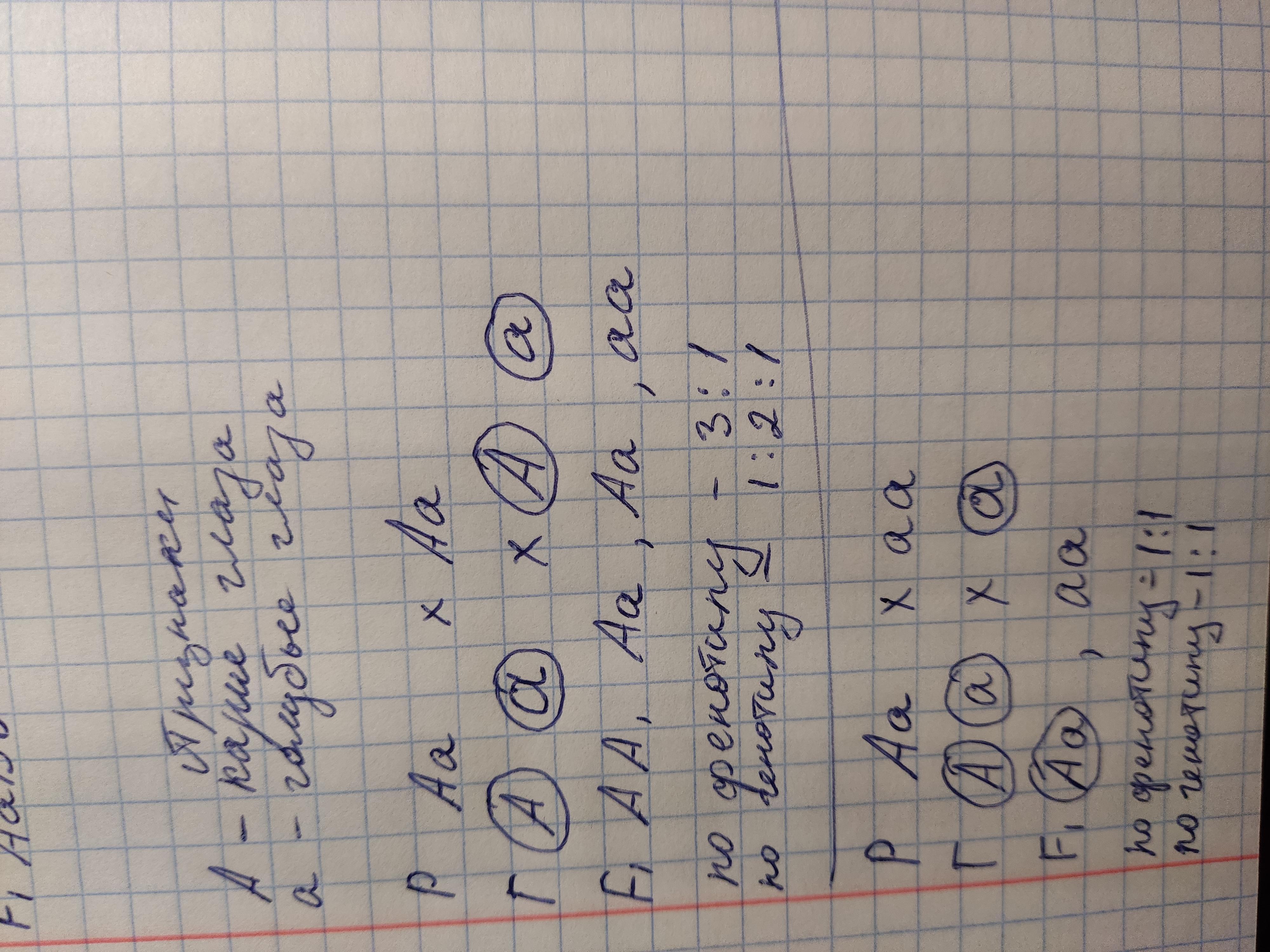 Напишите схему скрещивания, при котором расщепление по фенотипу равно 3:1 и 1:1.