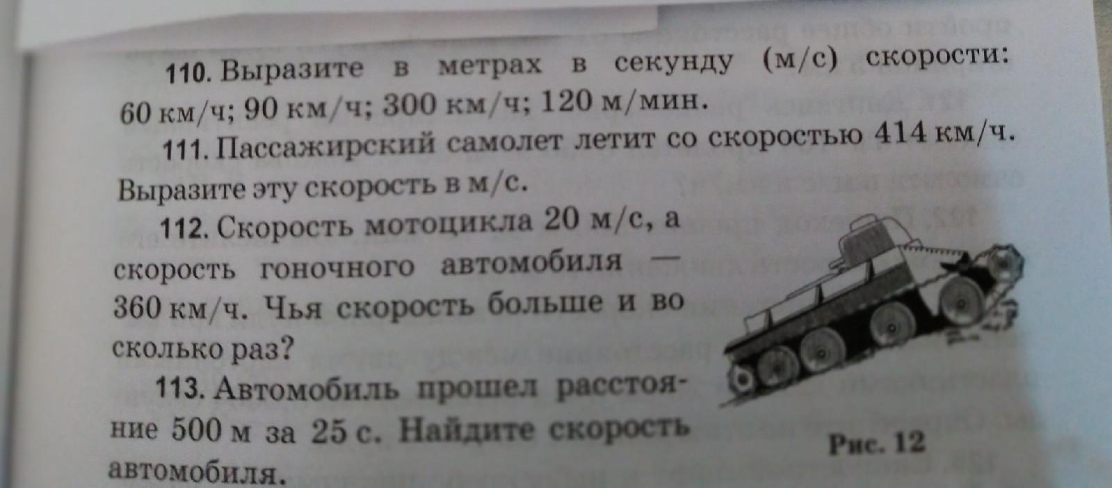 №110. Чтобы перевести километры в час в метры в секунду нужно разделить скорость на 3.6