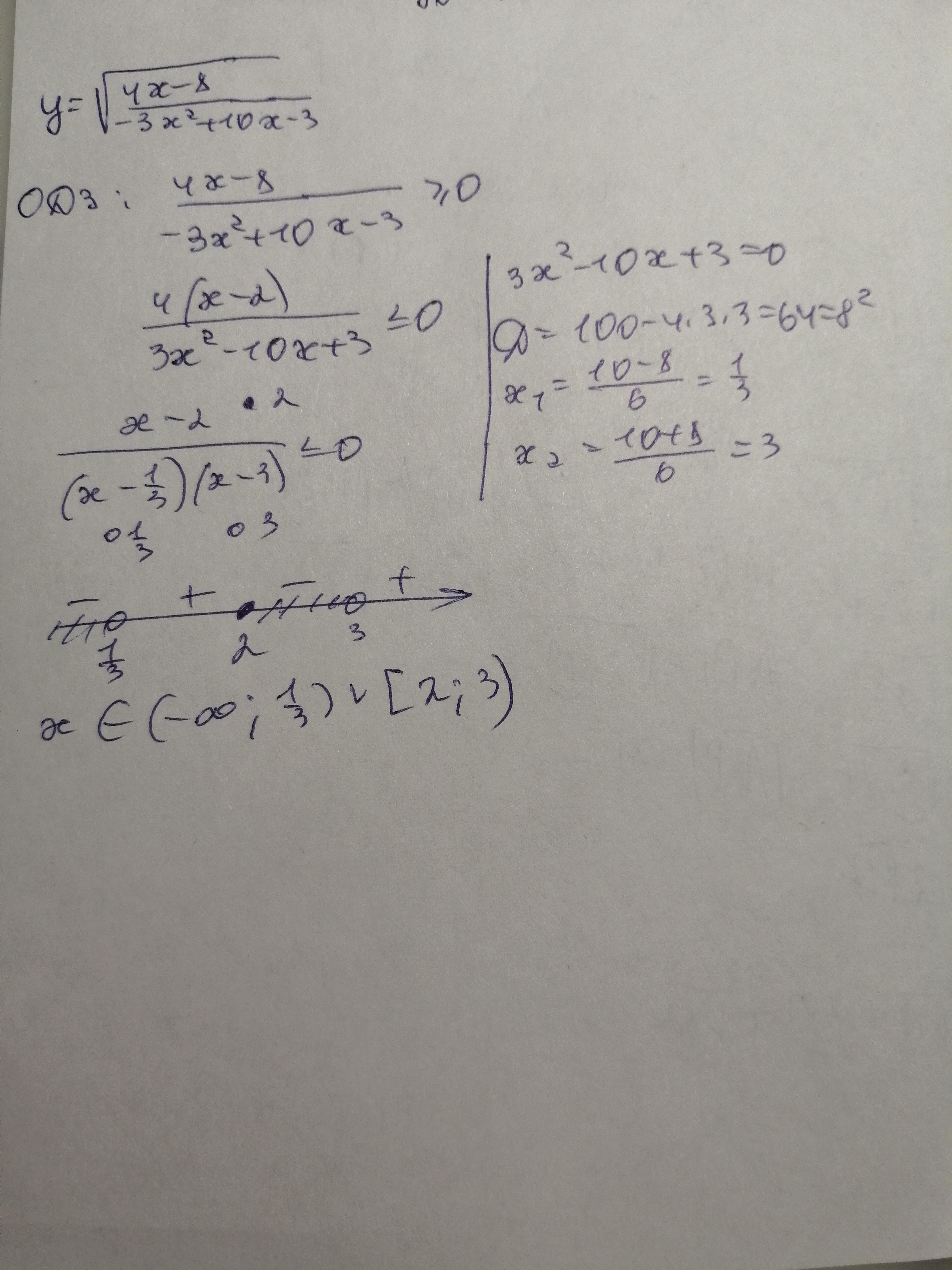 у меня ответ: 2 < = х < 3 . Не верное решение. Знак не поменяли в квадратном неравенстве.