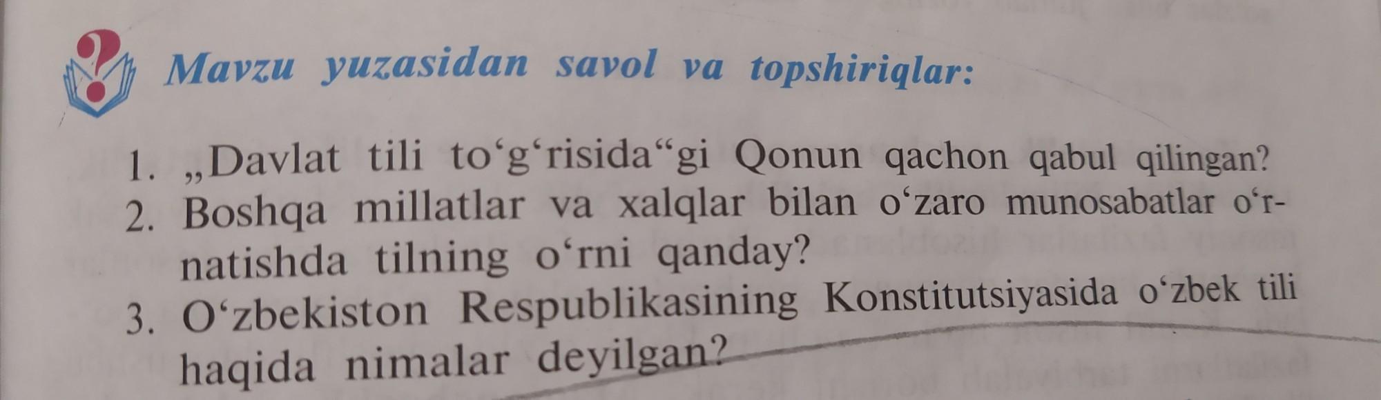 O'zbekiston Respublikasining davlat tili o'zbek tilidir.