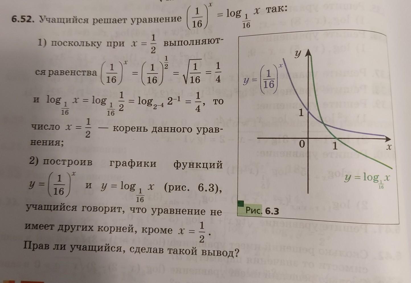 Нет, учащийся не прав. Графики являются схематичным (примерным) рисунком. Они легко могут быть построены неточно, тем более такие, как в данном задании. Из сказанного следует, что утверждение вида "из рисунка следует , что <фраза>" в чистом виде произносить нельзя. В качестве окончательного опровержения, несложно заметить, что уравнение имеет еще и корень , хотя он, к слову, тоже не последний.