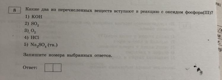 1,2.Так как P2O3 кислотный оксид, он будет взаимодействовать с KOH (образование кислой соли K2HPO3). С кислородом он окисляется до высшего кислотного оксида P2O5.