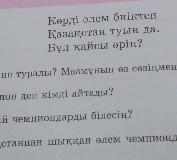 34. Өлеңді оқып, сұрақтың жауабын айт. Чемпион болып бокстан, Көтерілдім тұғырға. Ч 1 2. 3 57