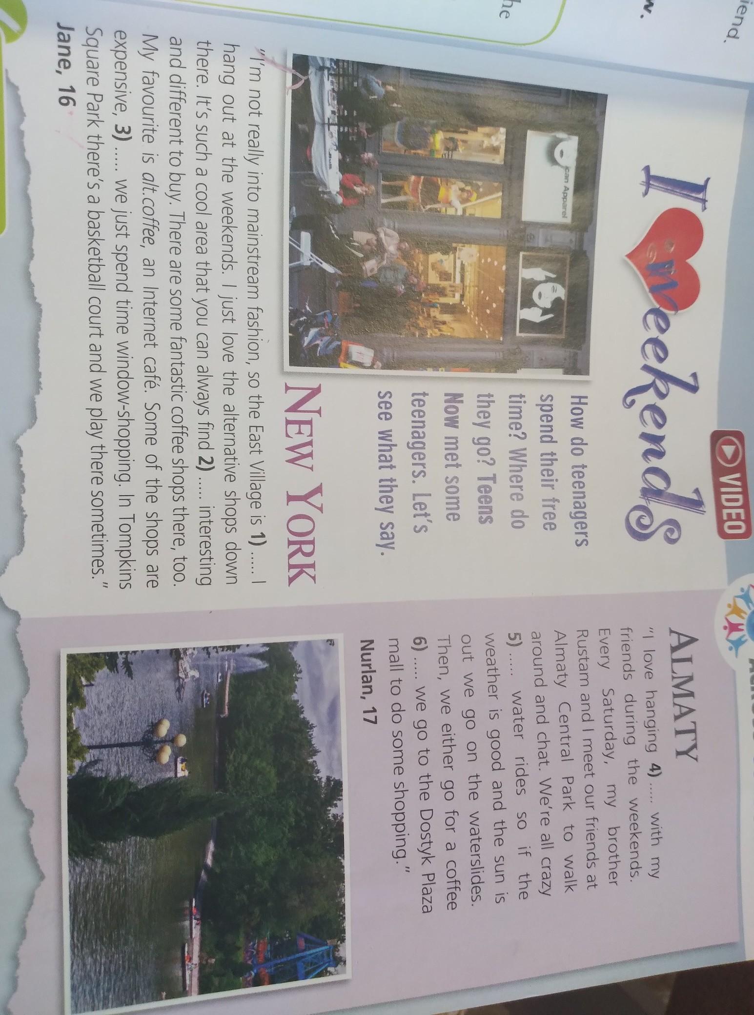 Jane likes to spend her weekends in the East Village. She can also sit in an Internet cafe and sometimes play on the basketball court with friends.