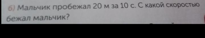 Б) Мальчик пробежал 20 метров за 10 секунд. С какой скоростью бежал мальчик?
