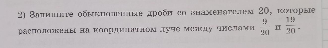 координатный луч это прямая, имеющая начало, но не имеющая конца. На ней у тебя расположены точки с координатой 9/20 и 19/20, а между ними будут 10/20, 11/20, 12/20, 13/20, 14/20, 15/20, 16/20, 17/20, 18/20