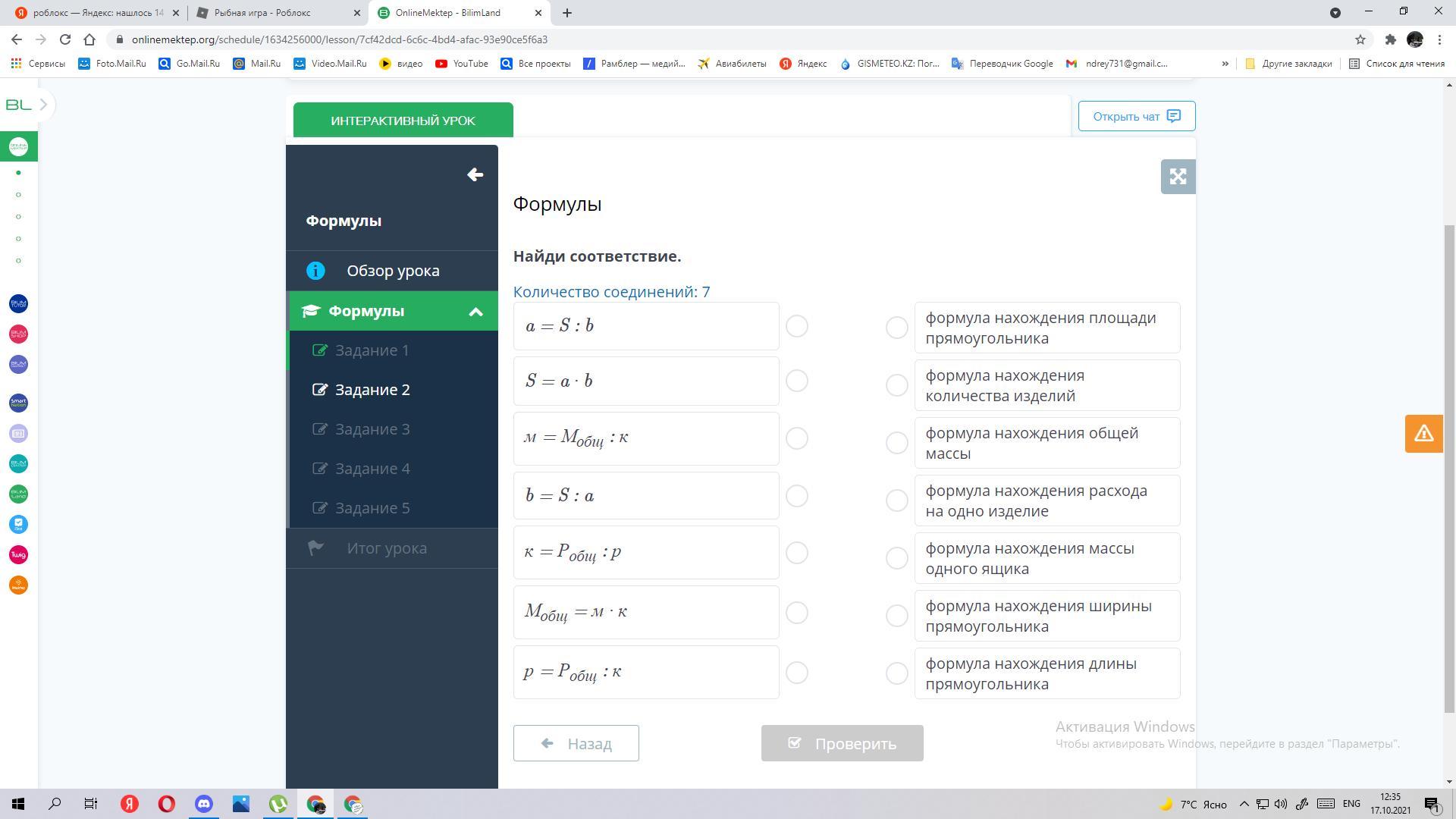1-7, 2-1, 3-5, 4-6, 5-4, 6-3, 7-2 конечно не уверен но вроде бы так