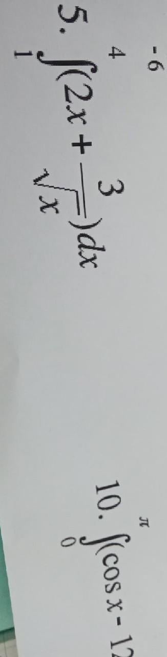 10 . ∫₀ⁿ( cosx - 12 )dx = ( sinx - 12x )│₀ⁿ = ( sinπ - 12π ) - ( sin0 - 12 * 0 ) =