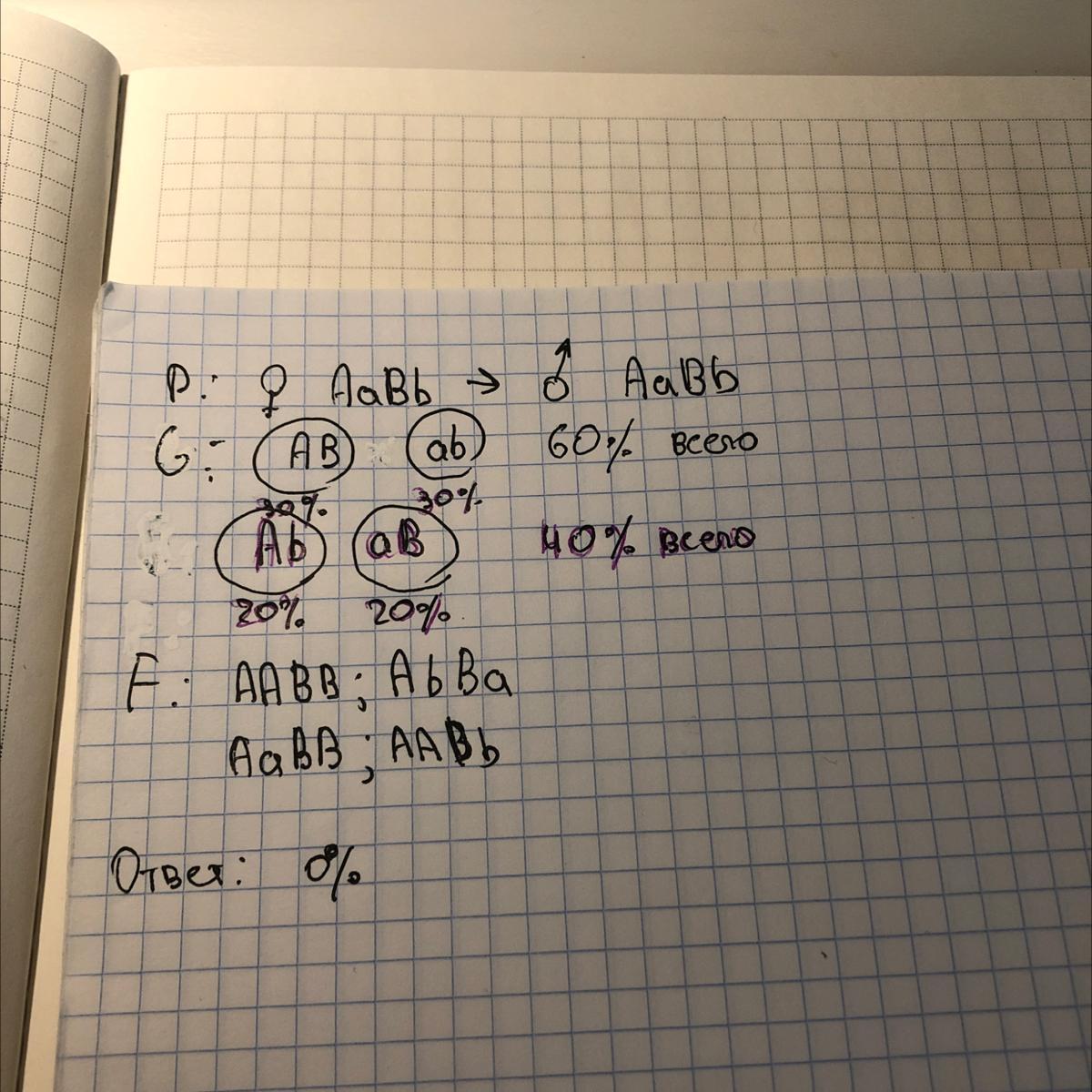 У дрозофилы гены А и В локализованы в одной аутосоме на расстоянии 40 Морганид. Определите вероятность появления потомства со всеми рецессивными признаками, если известно, что оба родителя дигетерозиготы (цис-сцепление).