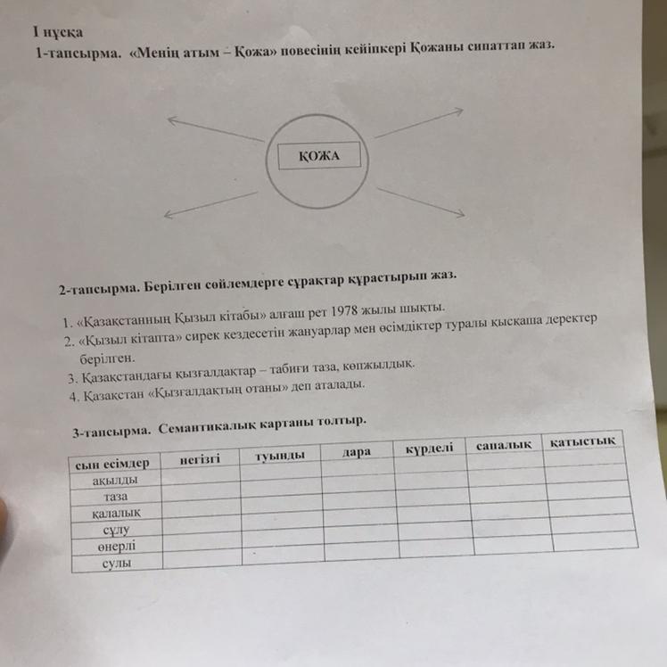 1-тапсырма. Қожа: тентек, мейірімді, қиыншылықтарға төтеп бере алады, епті.