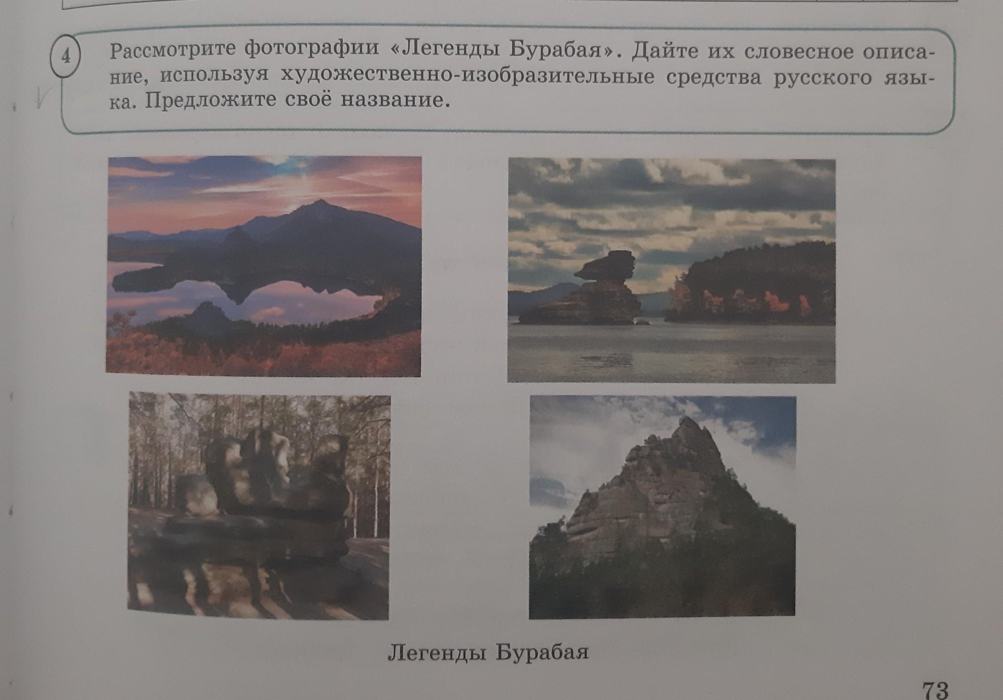 Рассмотрите фотографии «Легенды Бурабая». Дайте их словесное описа- ние, используя художественно-изобразительные средства русского язы- ка. Предложите своё название.