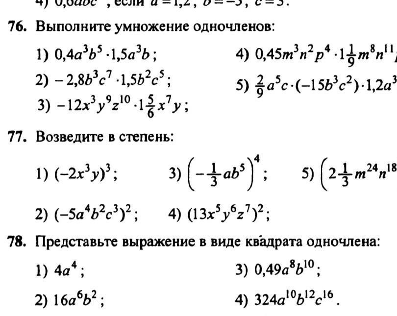 1)2³х⁶у³ 2) 5² a⁸ b⁴ c⁶ 3)⅓ а⁴ b²⁰ 4) 13² x¹⁰ y¹² z¹⁴. 5) не видно