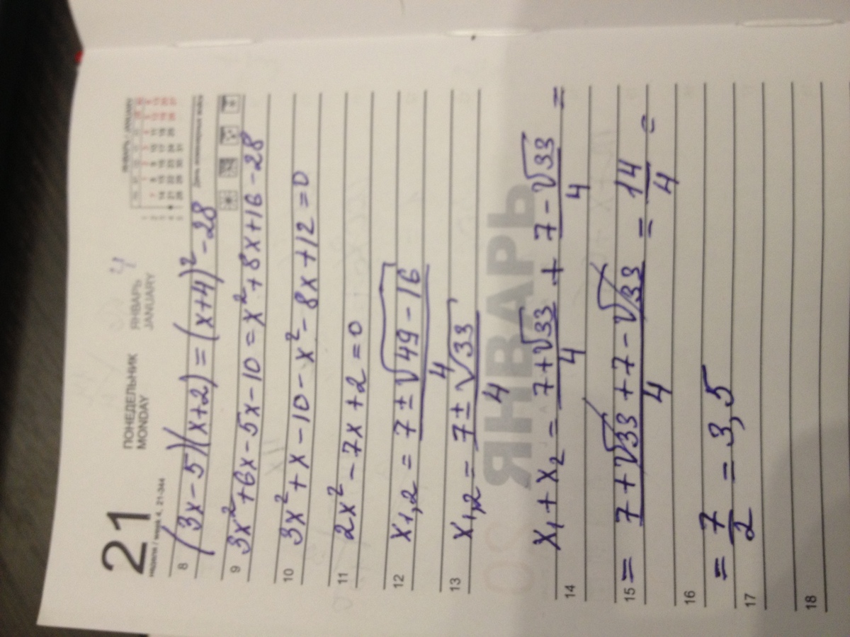 x² +3x-7x-21+ x² +5x-x-5-10=02x²-36=02x²=36x²= 18x=√18x=-√18