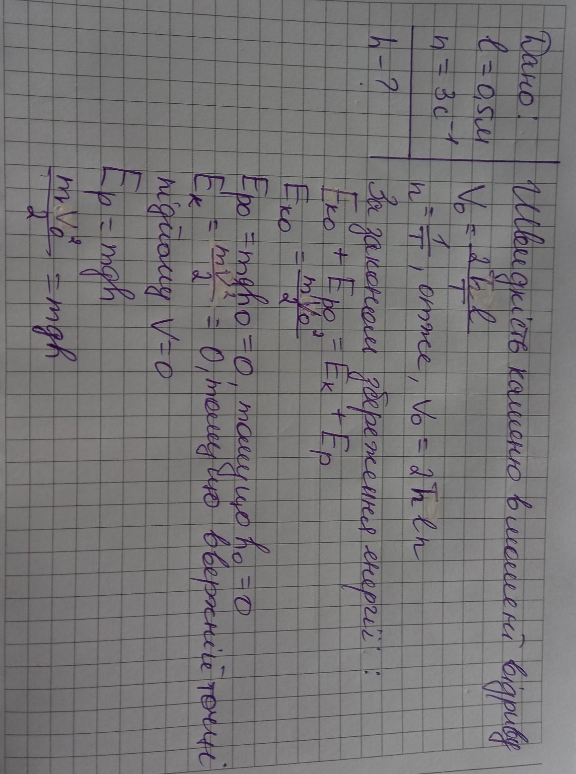 частотою 3,0 об/с. На яку висоту злетить камінь, якщо шнурок обірветься в той