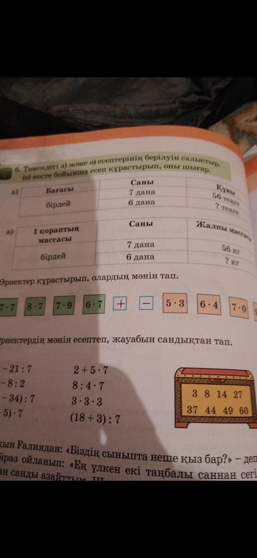 төмендегі а) және ә) есептерінің берілуін салыстыр.(ә) кесте бойынша есеп құрастырып,оны шығар