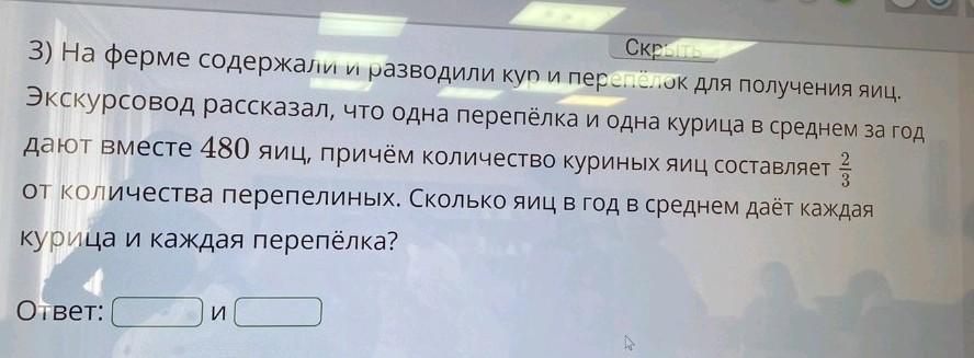 Соответственно 480 - 160 = 320 - Куриные яйца