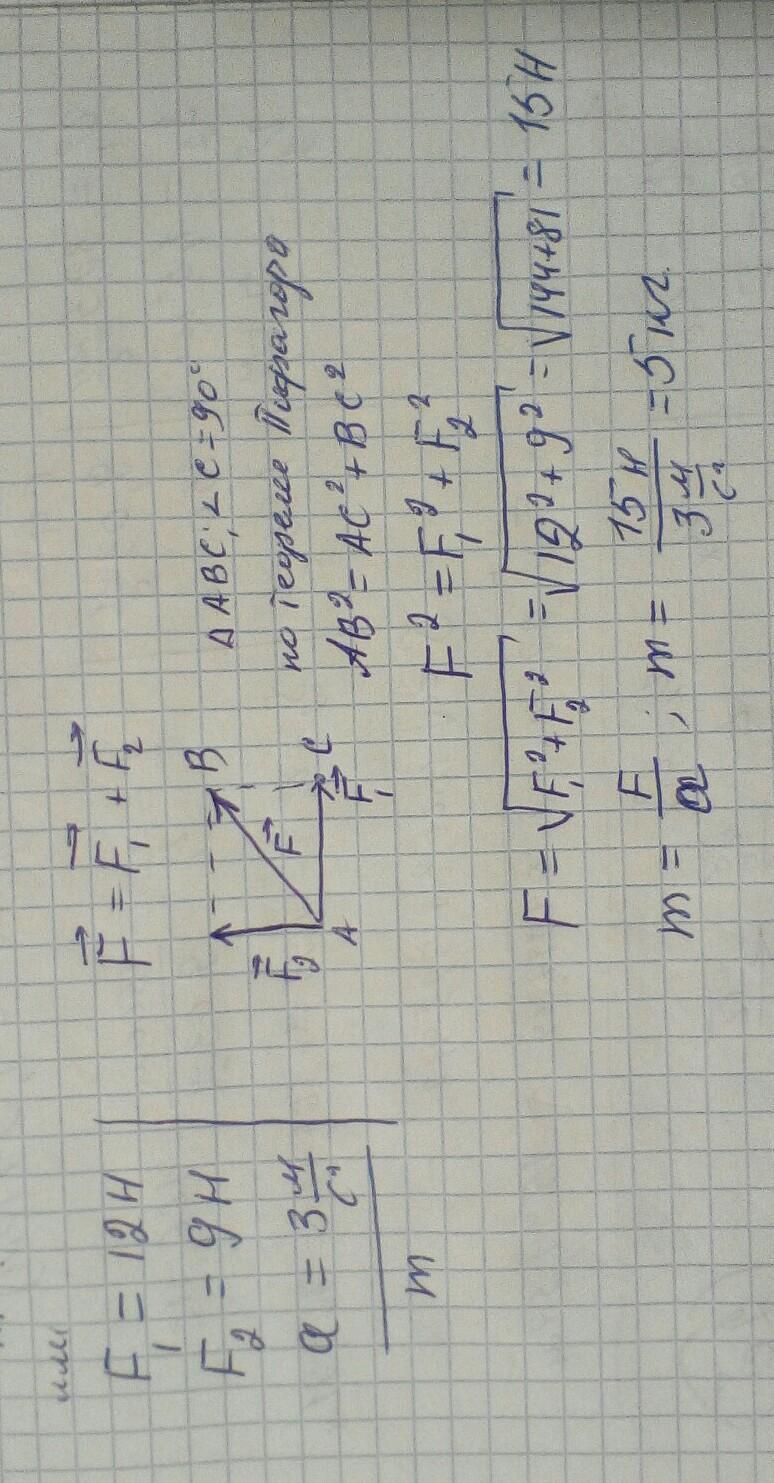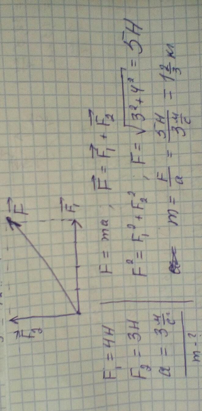к телу приложены две силы направленные перпендикулярно друг другу подберите массу тела и модули сил так чтобы ускорение тела былоравно 3 м с2