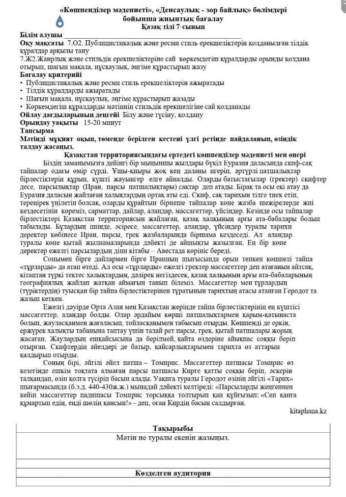 қазақ тілі бжб-2 7 сынып 1 тоқсан