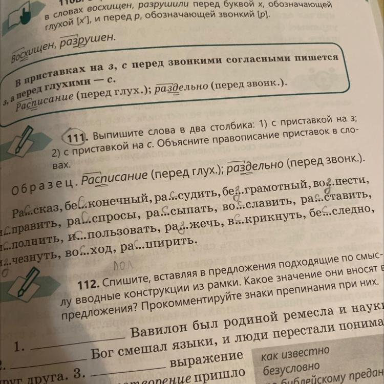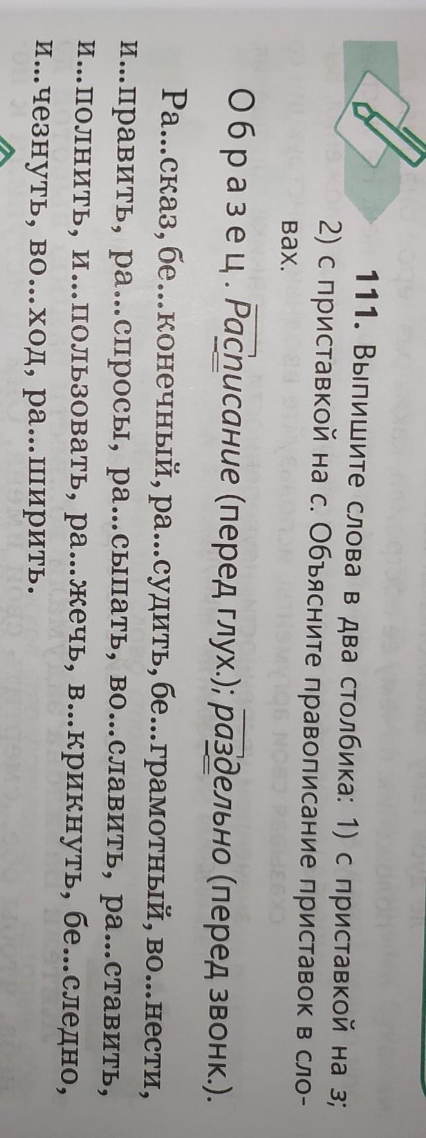 смотри выписывает в 2 столбика приставку с и з например расписание приставка рас глухой согласный в переди буква с и другое слово,н помню там в приставке буква з звонкий надеюсь понятно