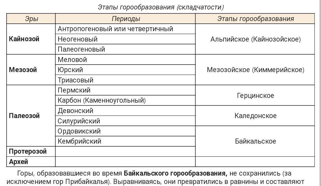 Обычно выделяются три стадии. Первая — период прогибания и накопления мощных осадочных толщ. Вторая — стадия формирования и образования гор. И, наконец, третья — стадия старения и разрушения гор. Такая последовательность процесса горообразования была подмечена еще в период становления учения о геосинклиналях (конец XIX — начало XX века).