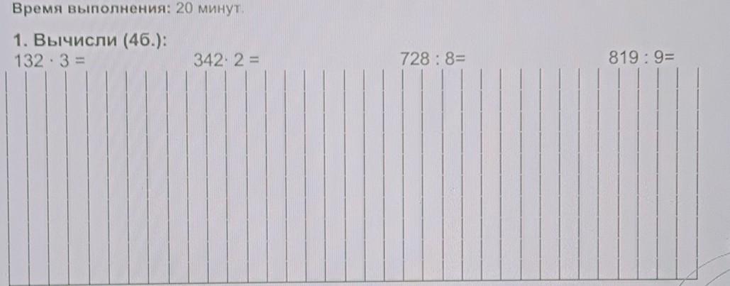 1. Вычисли (4б.): 132 3 = 342 2 = 728:8= 819:9= ||||