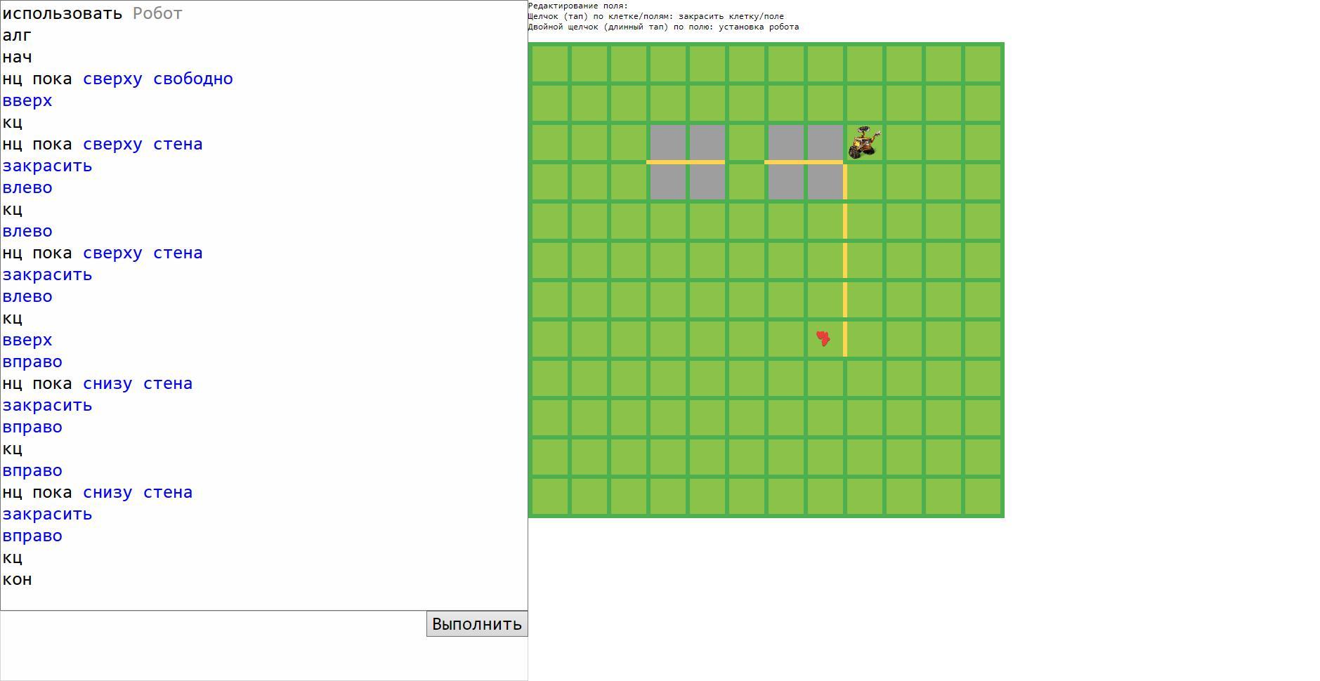 проходов внутри стен. Алгоритм может быть выполнен в среде формального исполнителя или