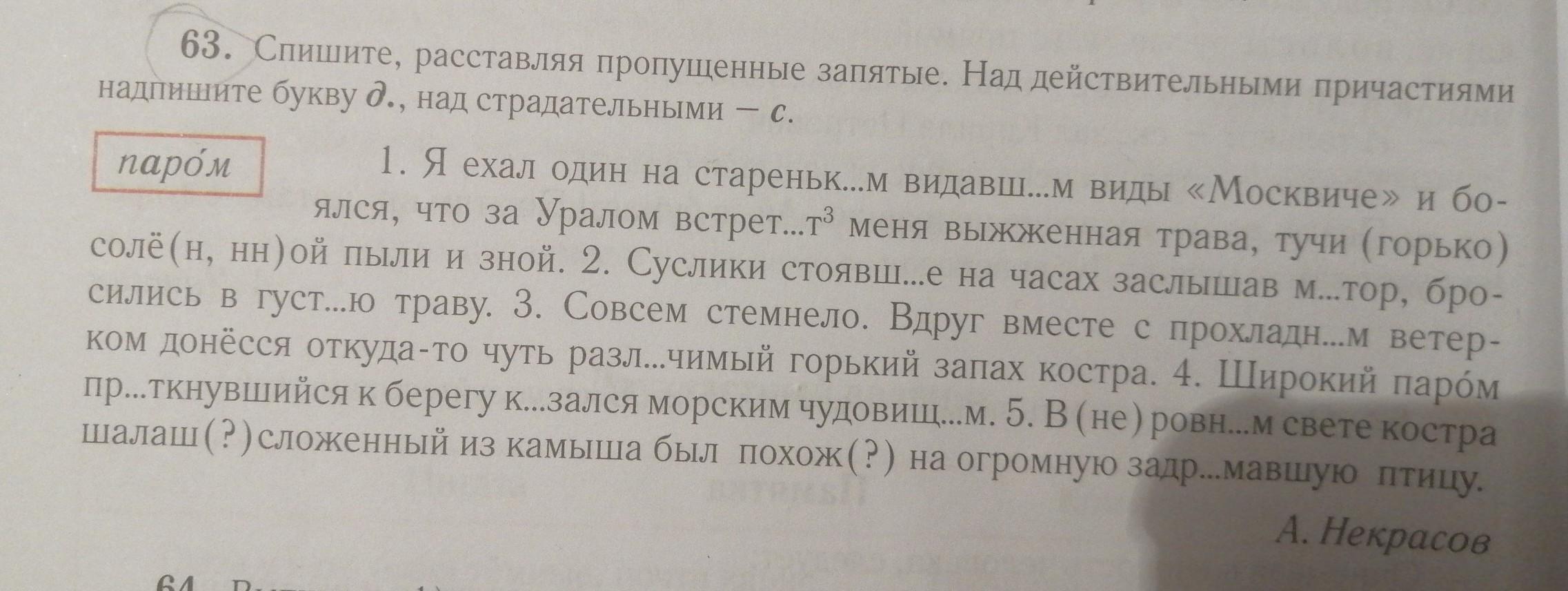 1. Я ехал один на стареньком, видавшем (Д) виды «Москвиче» и боялся, что за Уралом встретит меня выжженная (С) трава, тучи горько-солёной пыли и зной.