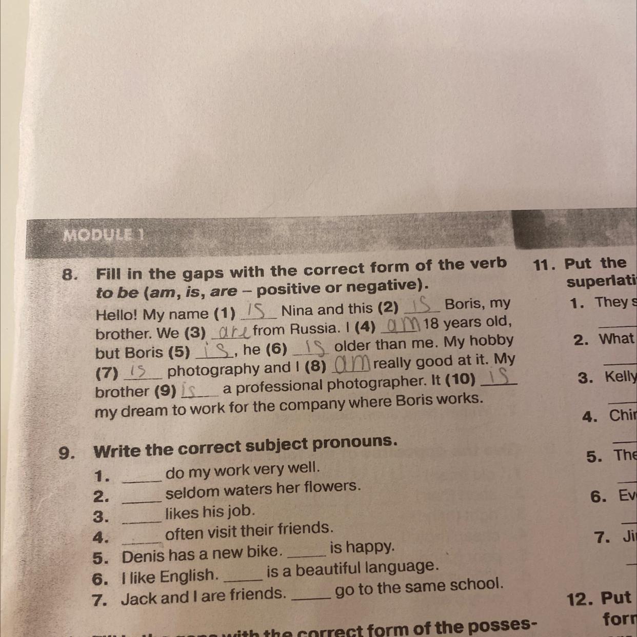 Упр. 9 в место пробел встовляешь слова которые я написала