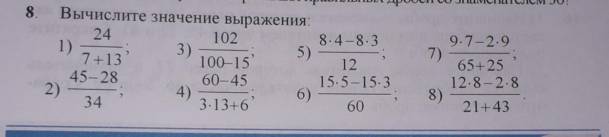 8) 12×8-2×8/21+43=80/64=10/8=5/4=1 1/4