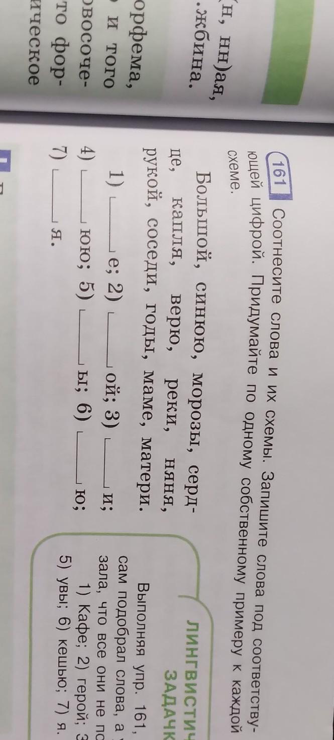 Соотнесите слова и их схемы. Запишите слова под соответству- ющей цифрой. Придумайте по одному собственному примеру к каждой Схеме.
