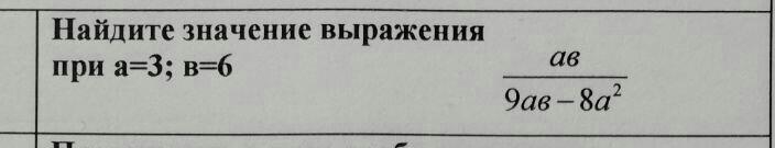 аb / 9ab - 8a² = 3 * 6 / 9 * 3 * 6 - 8 * 3² =
