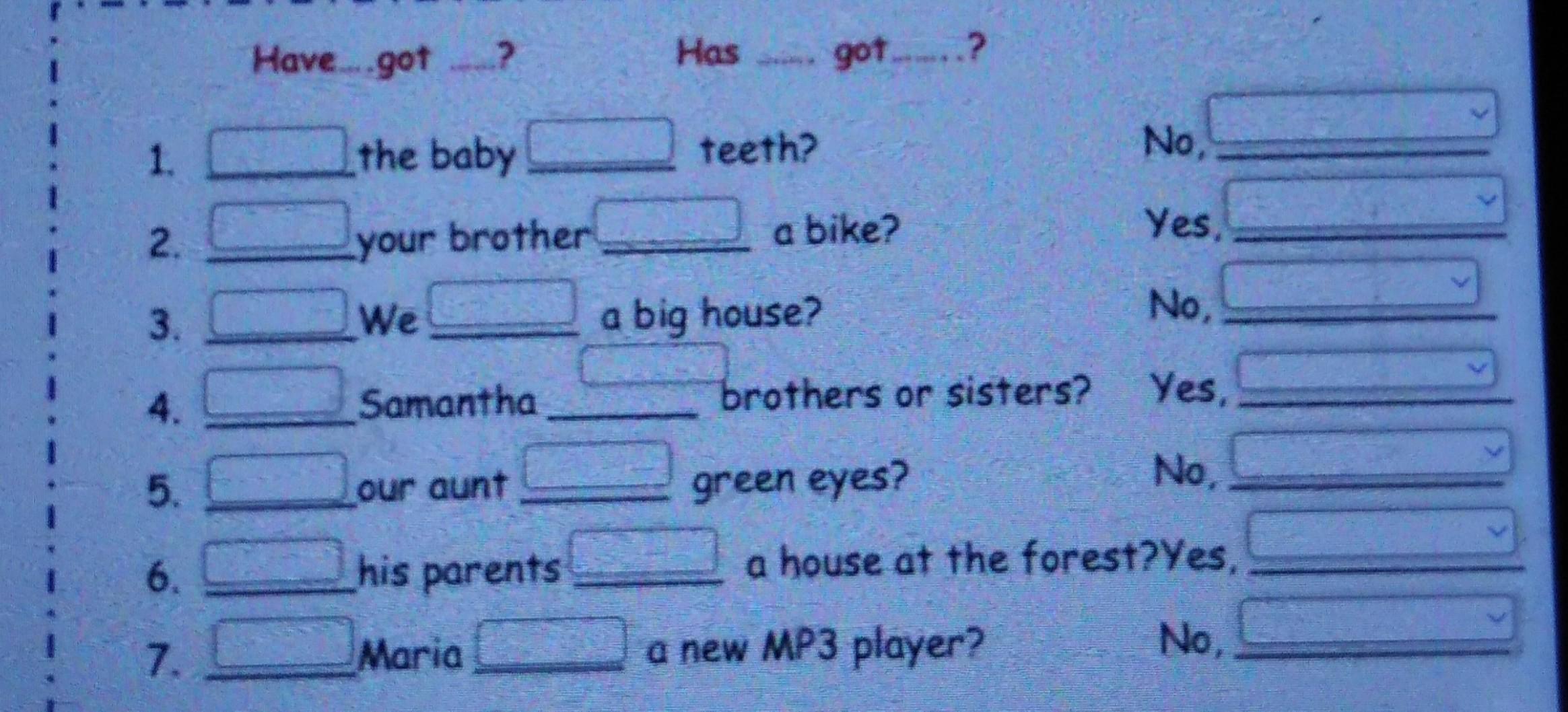 7. has got - she has not