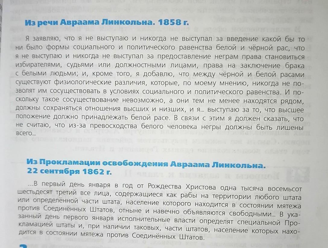 Сравните 2 документа (ОНИ НА ФОТО). Есть ли противоречия между ними? Какими мотивами руководствовался А. Линкольн, освобождая рабов? Означала ли Прокламация освобождения полную и повсеместную отмену рабства в США или преследовала конкретные политические цели?