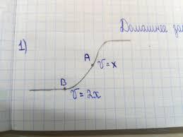 Лыжник съезжает с горы. В конце спуска его скорость в 2 раза больше , чем в середине горы. Сделайте рисунок в тетради (схематически). Изобразите скорости лыжнике в обоих положениях.