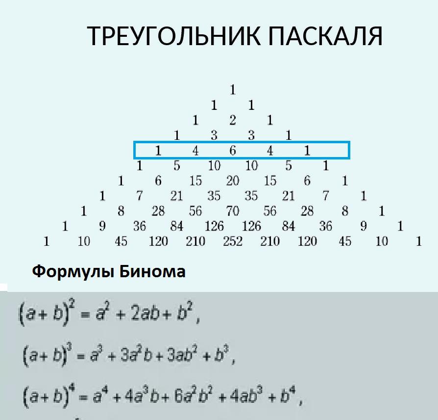 Коэффициенты бинома 4й степени по треугольнику Паскаля