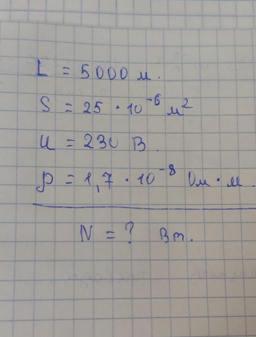 N=U²*S/(po*L)=230²*25*10⁻⁶/(1.7*10⁻⁸*5000)=15558.8 Вт