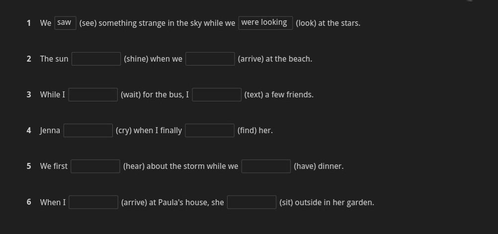 Пожалуйста помогите!!! Complete the sentences with the Past Simple or Past Continuous form of the verbs in brackets.